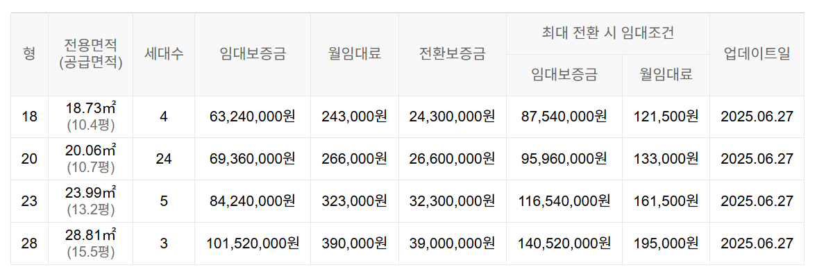 임대보증금 및 월 임대료는 입주자 모집공고일 기준이며, 보증금 최대 전환 시 변동될 수 있습니다.