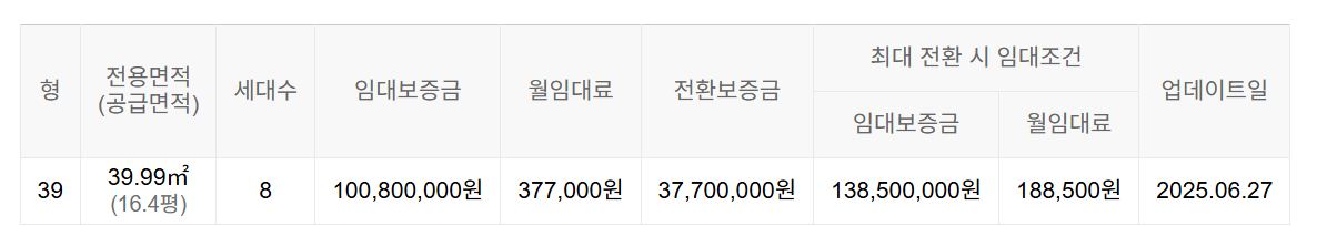 임대보증금 및 월 임대료는 입주자 모집공고일 기준이며, 보증금 최대 전환 시 변동될 수 있습니다.