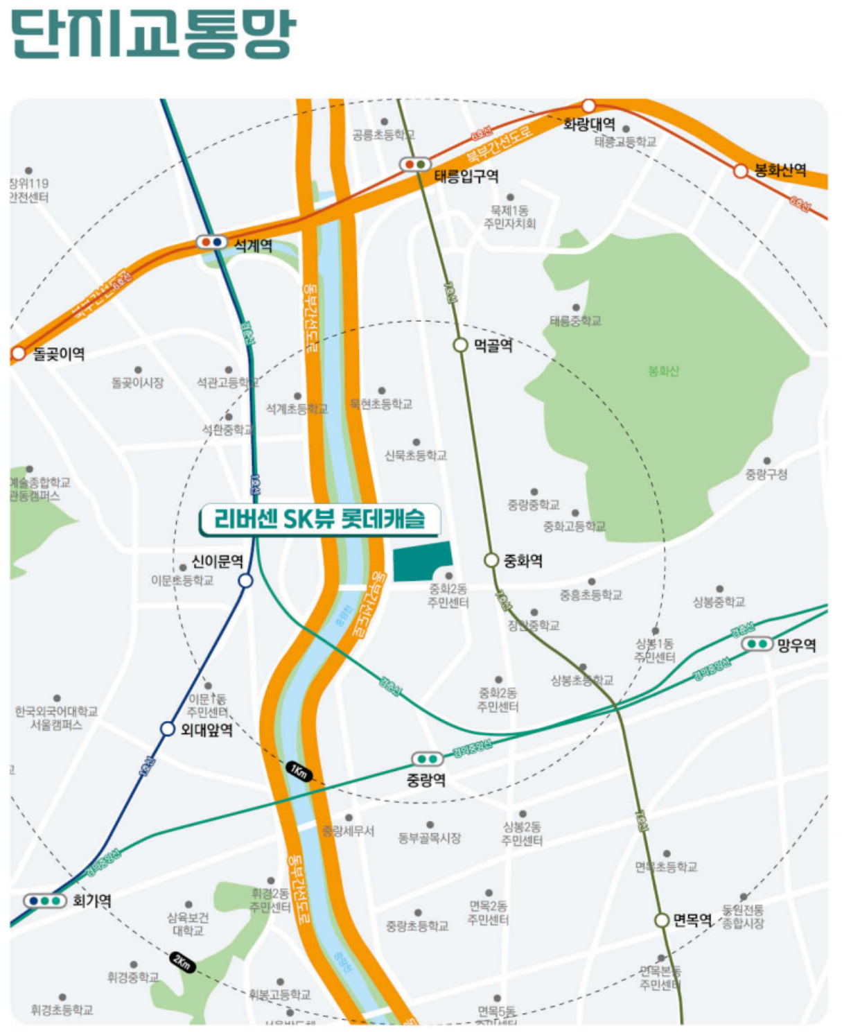 중화역(7호선) 도보 3분, 신이문역(1호선), 중랑역(경의중앙·경춘선), 동부간선도로