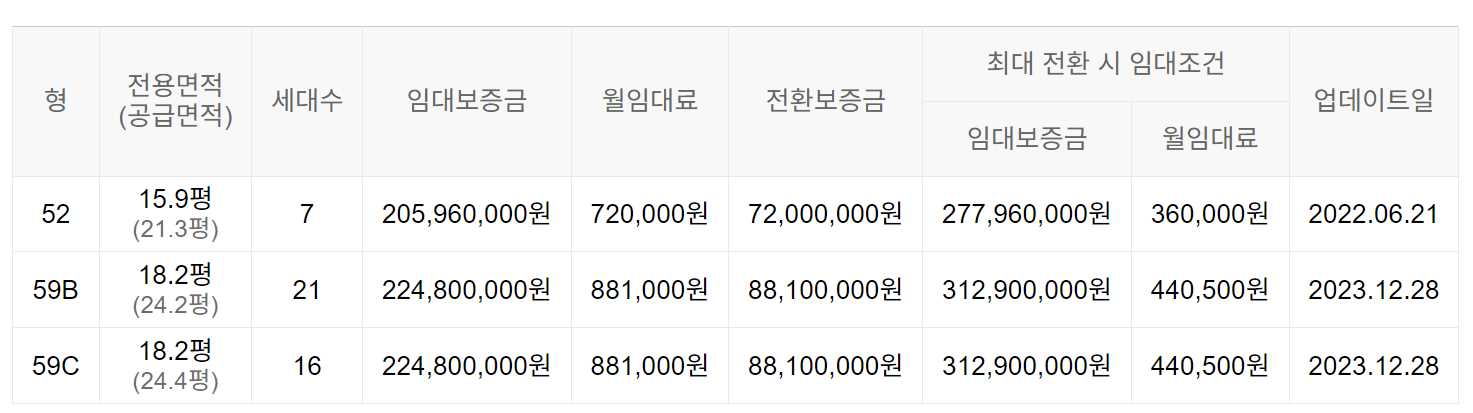 임대보증금 및 월 임대료는 입주자 모집공고일 기준이며, 보증금 최대 전환 시 변동될 수 있습니다.
