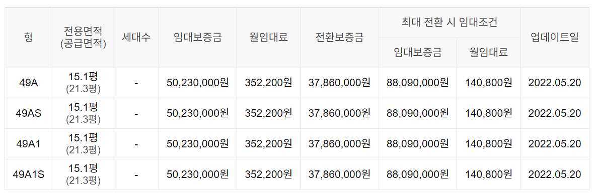 임대보증금 및 월 임대료는 입주자 모집공고일 기준이며, 보증금 최대 전환 시 변동될 수 있습니다.