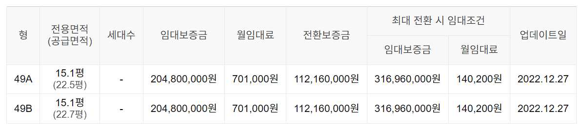 임대보증금 및 월 임대료는 입주자 모집공고일 기준이며, 보증금 최대 전환 시 변동될 수 있습니다.