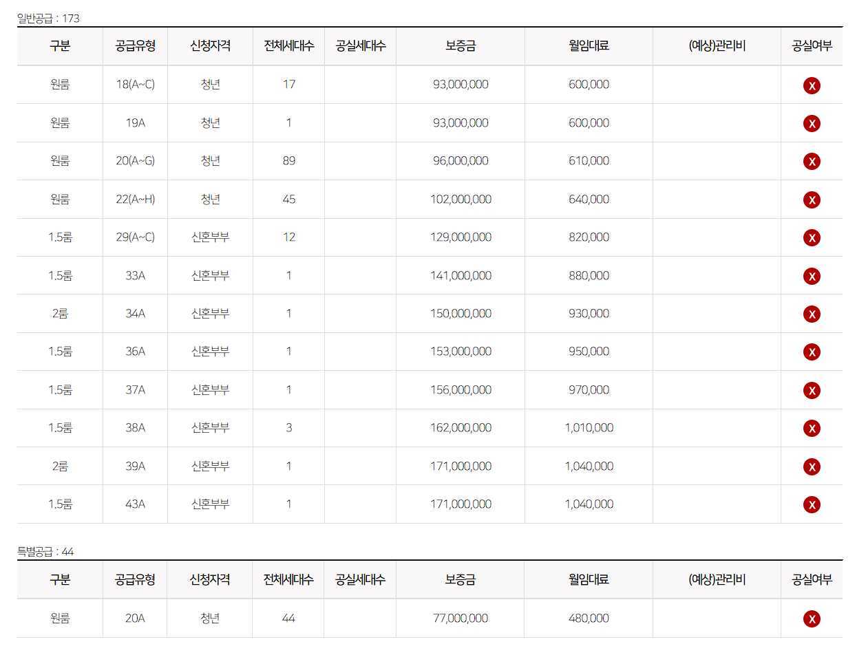 임대보증금 및 월 임대료는 입주자 모집공고일 기준으로 보증금 최대 전환 시 변동될 수 있습니다.
