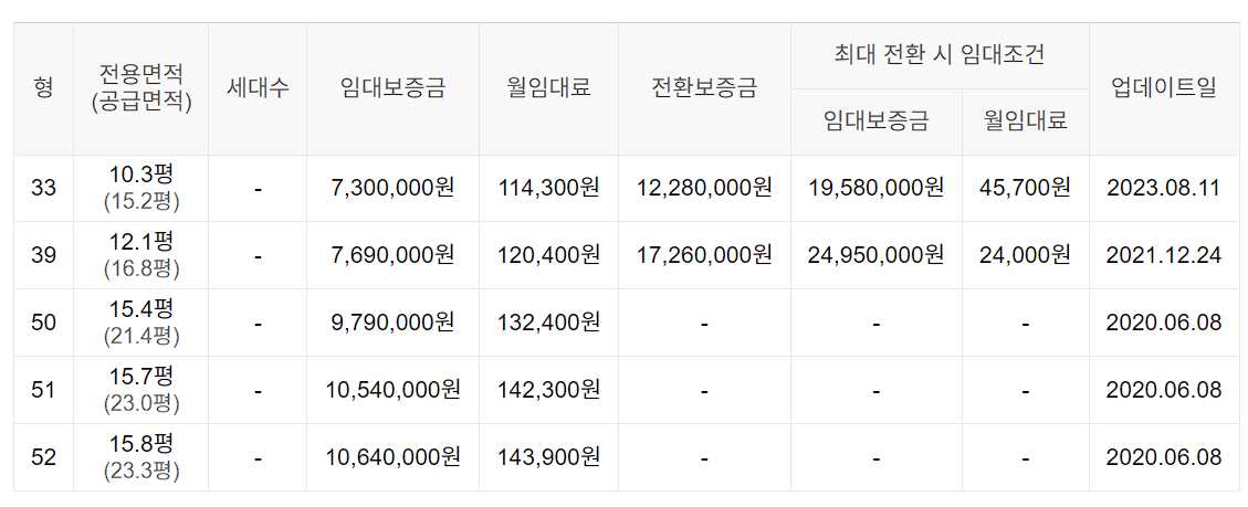 임대보증금 및 월 임대료는 입주자 모집공고일 기준이며, 보증금 최대 전환 시 변동될 수 있습니다.