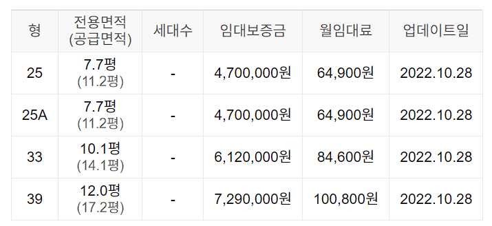 임대보증금 및 월 임대료는 입주자 모집공고일 기준이며, 보증금 최대 전환 시 변동될 수 있습니다.