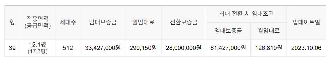 임대보증금 및 월 임대료는 입주자 모집공고일 기준이며, 보증금 최대 전환 시 변동될 수 있습니다.