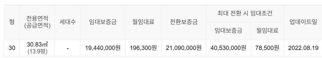 임대보증금 및 월 임대료는 입주자 모집공고일 기준이며, 보증금 최대 전환 시 변동될 수 있습니다.