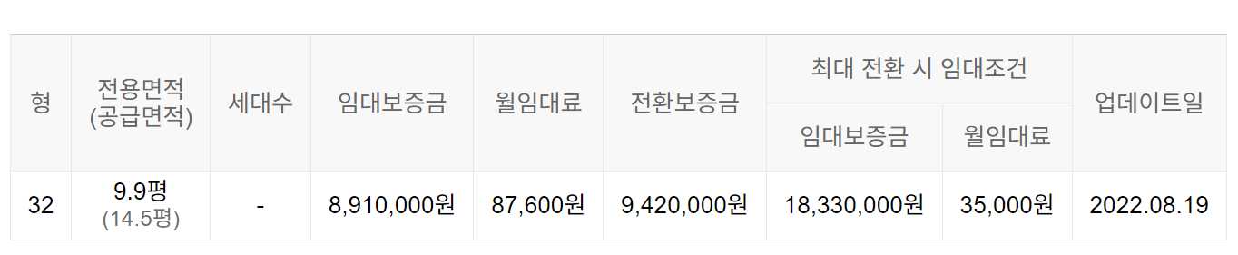 임대보증금 및 월 임대료는 입주자 모집공고일 기준이며, 보증금 최대 전환 시 변동될 수 있습니다.