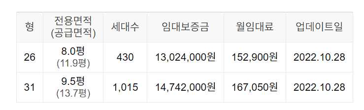 임대보증금 및 월 임대료는 입주자 모집공고일 기준이며, 보증금 최대 전환 시 변동될 수 있습니다.