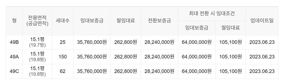 임대보증금 및 월 임대료는 입주자 모집공고일 기준이며, 보증금 최대 전환 시 변동될 수 있습니다.