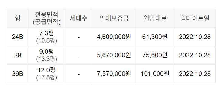 임대보증금 및 월 임대료는 입주자 모집공고일 기준이며, 보증금 최대 전환 시 변동될 수 있습니다.