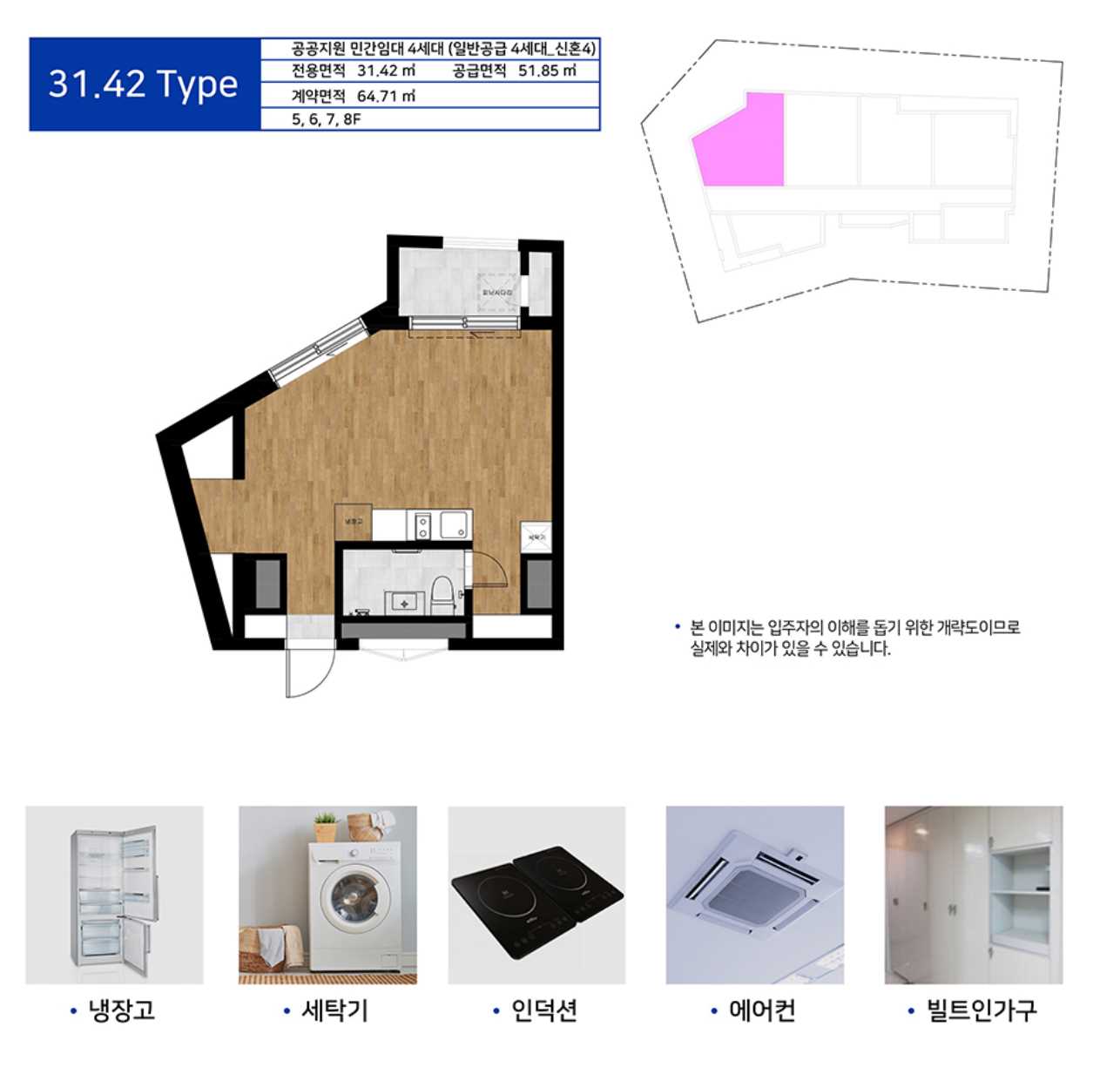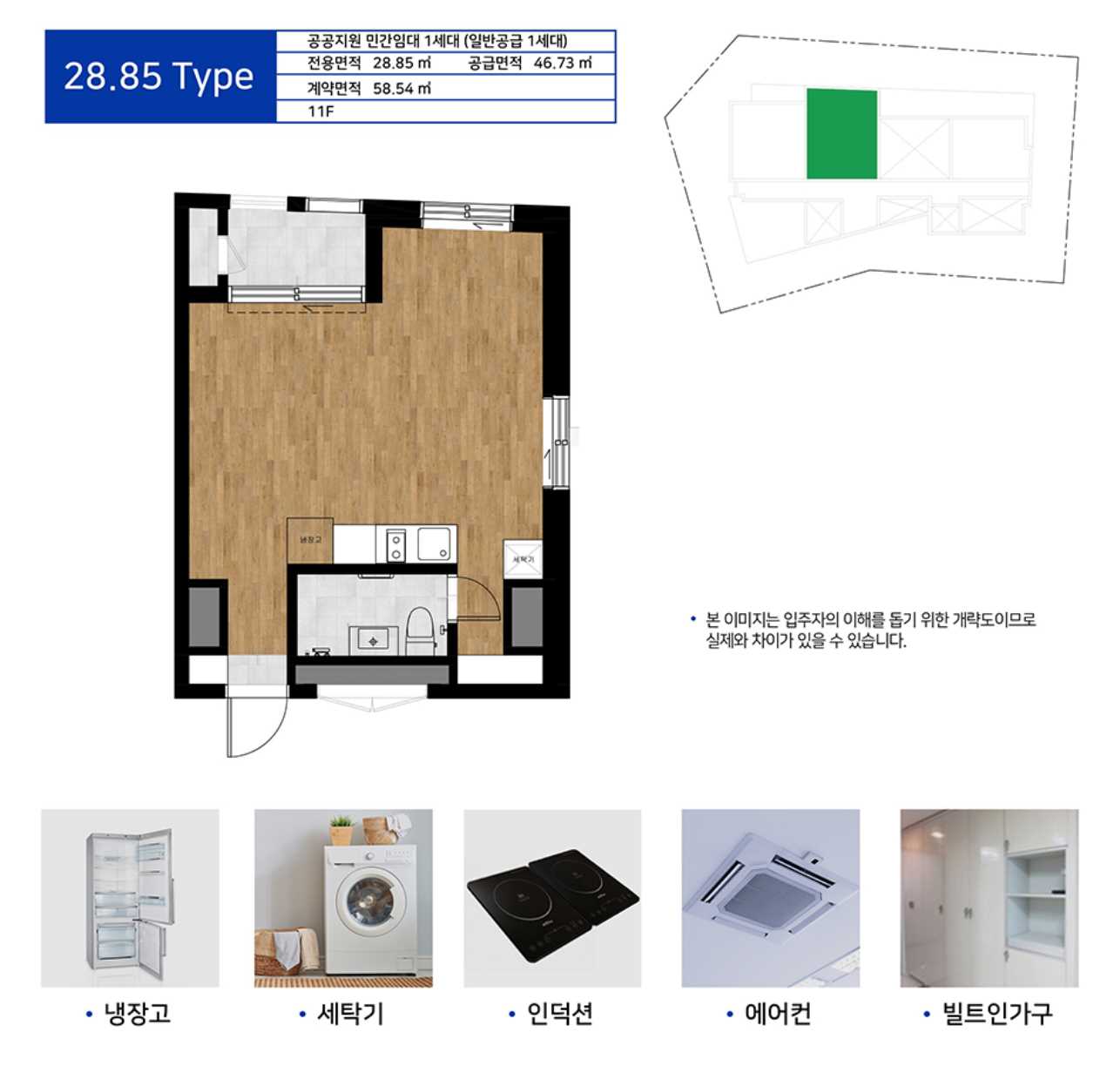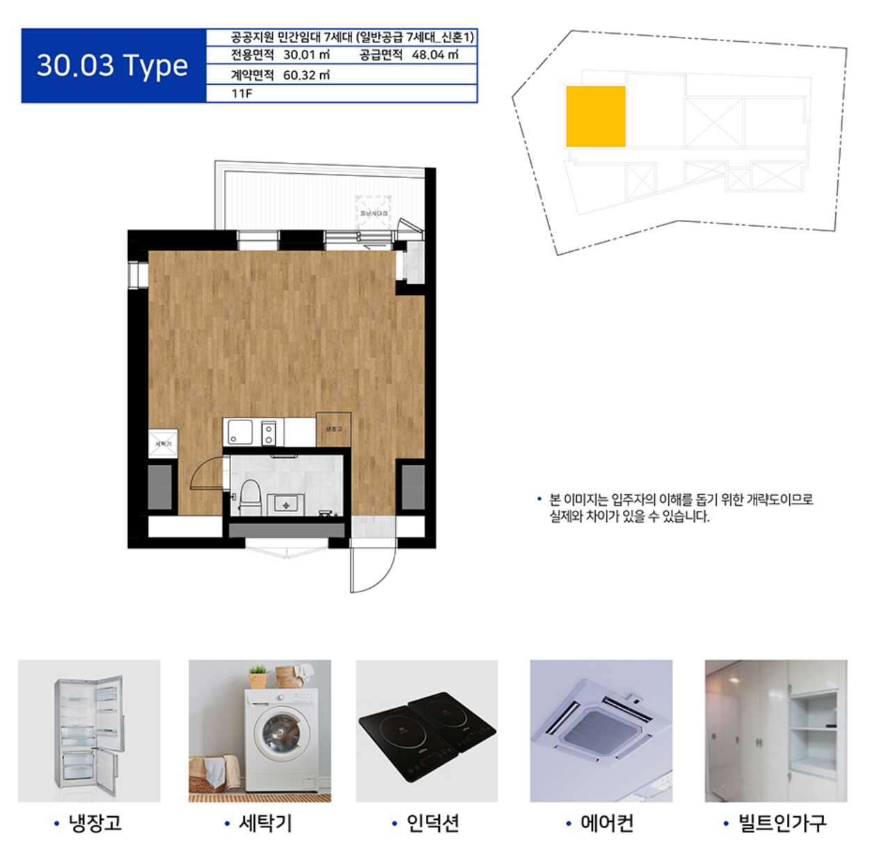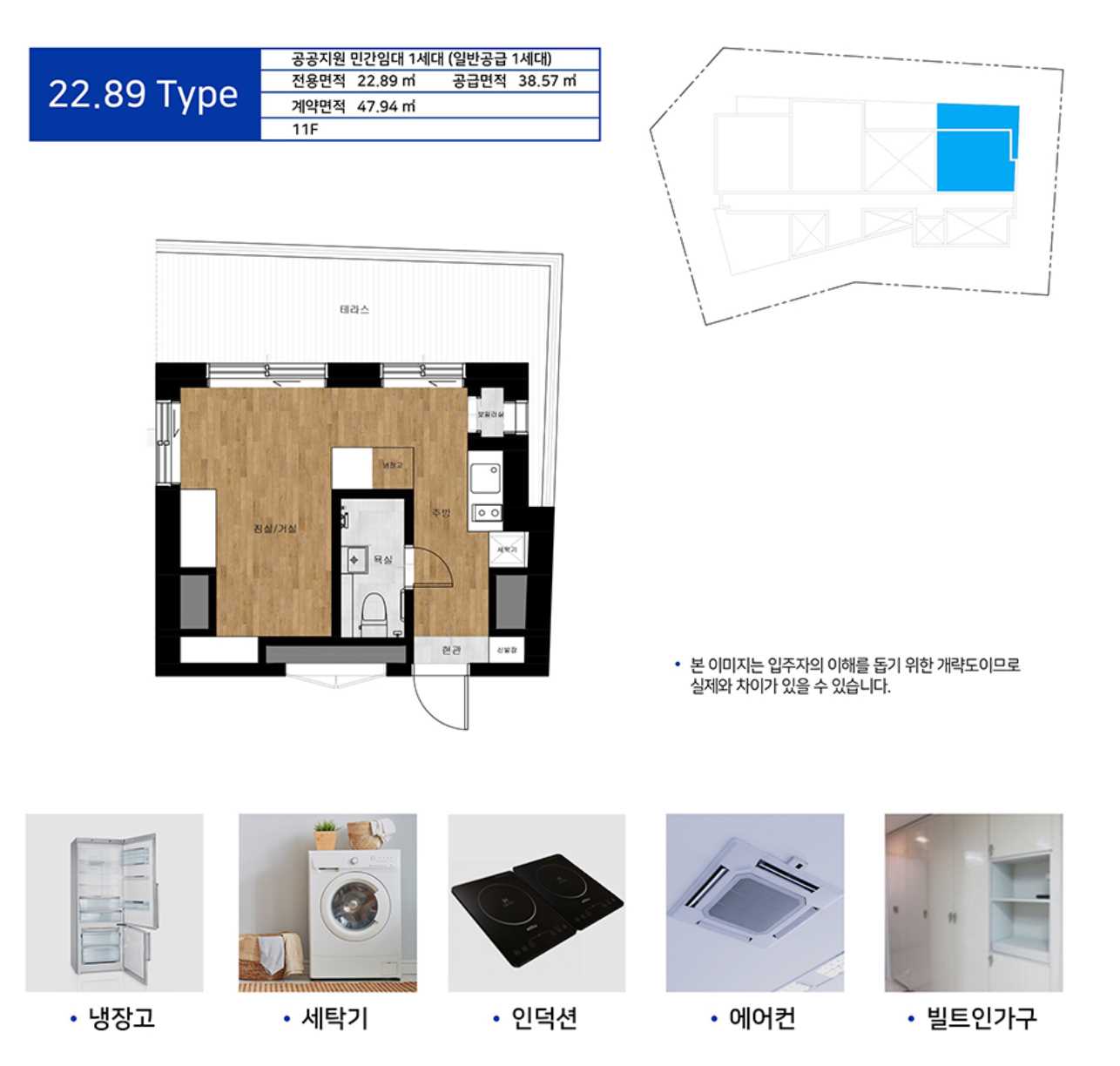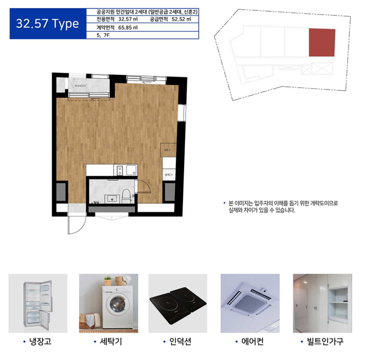 임대보증금 및 월 임대료는 입주자 모집공고일 기준으로 보증금 최대 전환 시 변동될 수 있습니다.