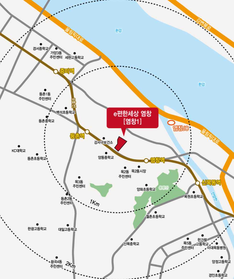 e편한세상염창는 편의점 마트, 병원, 대학교, 공원, 카페 등 다양한 편의시설이 고루 갖춰진 지역에 위치하고 있습니다.