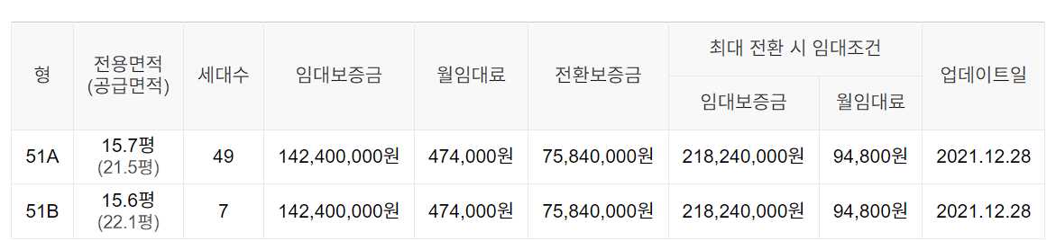 임대보증금 및 월 임대료는 입주자 모집공고일 기준이며, 보증금 최대 전환 시 변동될 수 있습니다.