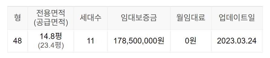 임대보증금 및 월 임대료는 입주자 모집공고일 기준이며, 보증금 최대 전환 시 변동될 수 있습니다.