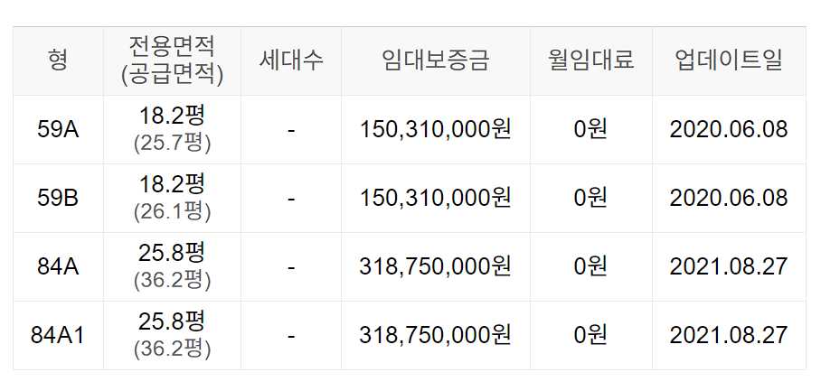 임대보증금 및 월 임대료는 입주자 모집공고일 기준이며, 보증금 최대 전환 시 변동될 수 있습니다.