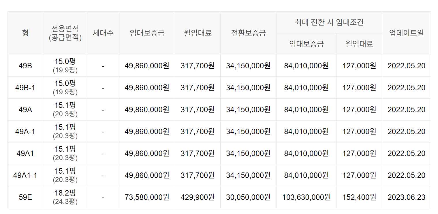 임대보증금 및 월 임대료는 입주자 모집공고일 기준이며, 보증금 최대 전환 시 변동될 수 있습니다.