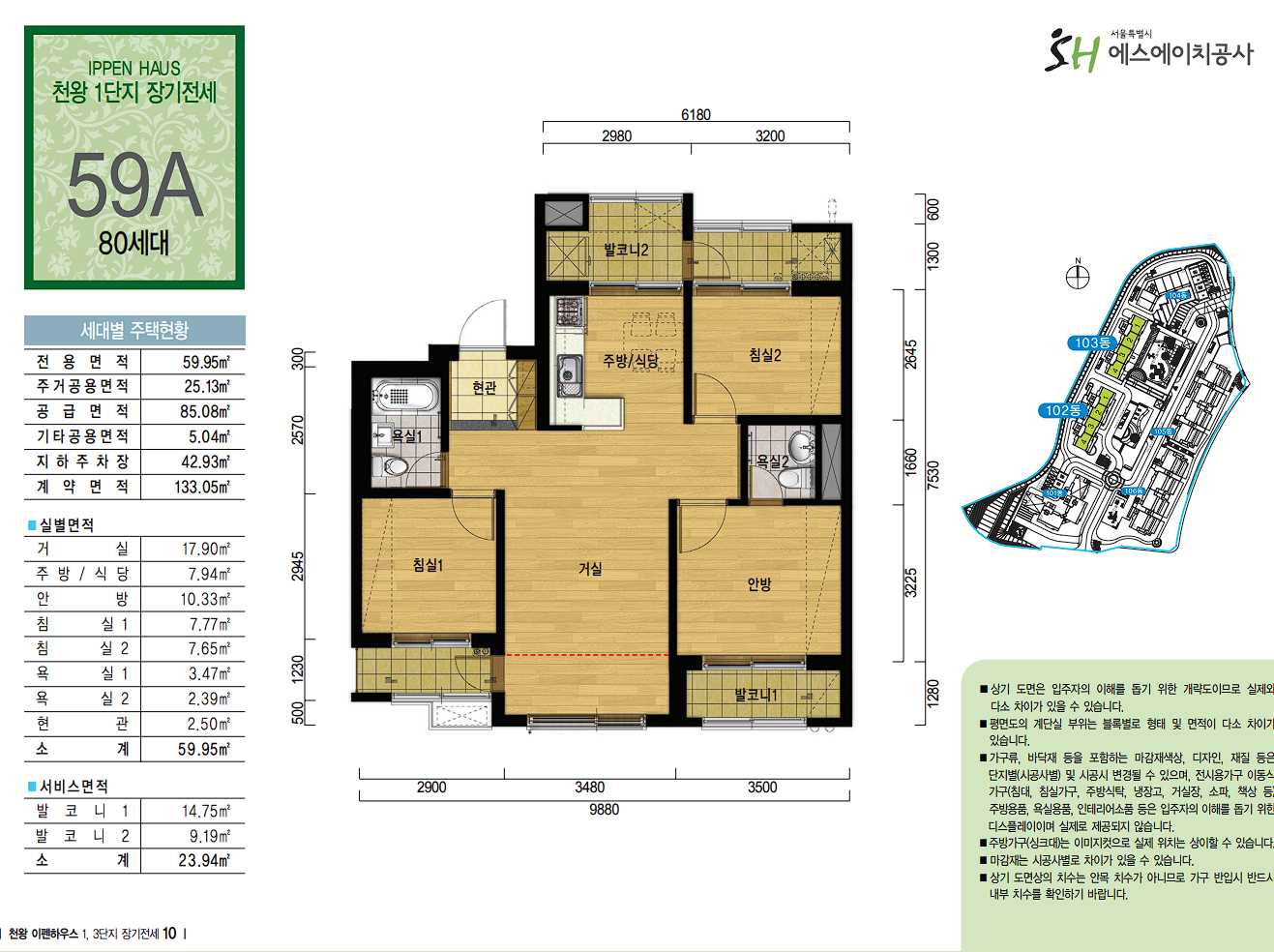 임대보증금 및 월 임대료는 입주자 모집공고일 기준이며, 보증금 최대 전환 시 변동될 수 있습니다.