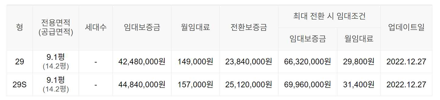 임대보증금 및 월 임대료는 입주자 모집공고일 기준이며, 보증금 최대 전환 시 변동될 수 있습니다.