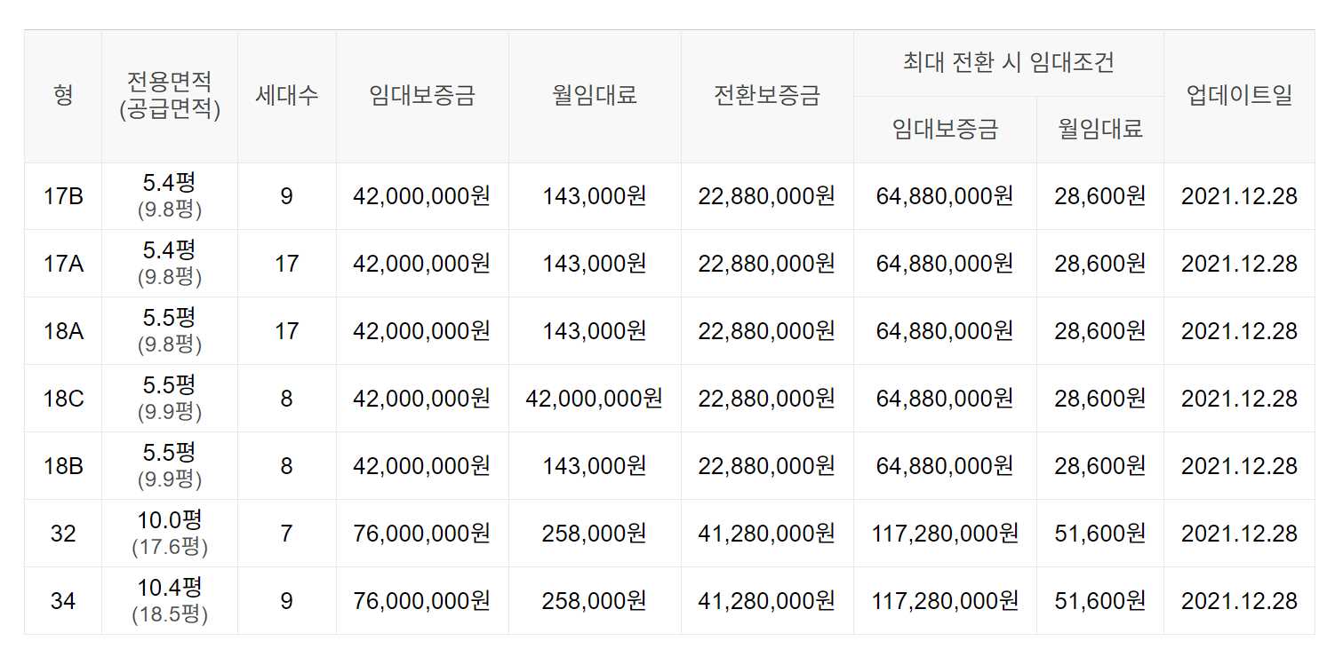 임대보증금 및 월 임대료는 입주자 모집공고일 기준이며, 보증금 최대 전환 시 변동될 수 있습니다.
