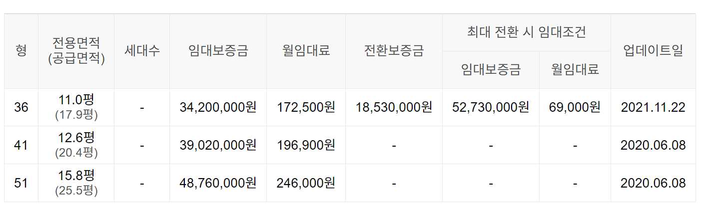 임대보증금 및 월 임대료는 입주자 모집공고일 기준이며, 보증금 최대 전환 시 변동될 수 있습니다.