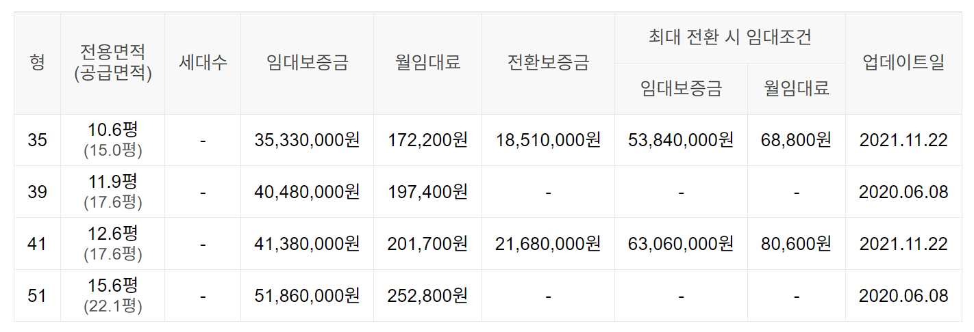 임대보증금 및 월 임대료는 입주자 모집공고일 기준이며, 보증금 최대 전환 시 변동될 수 있습니다.