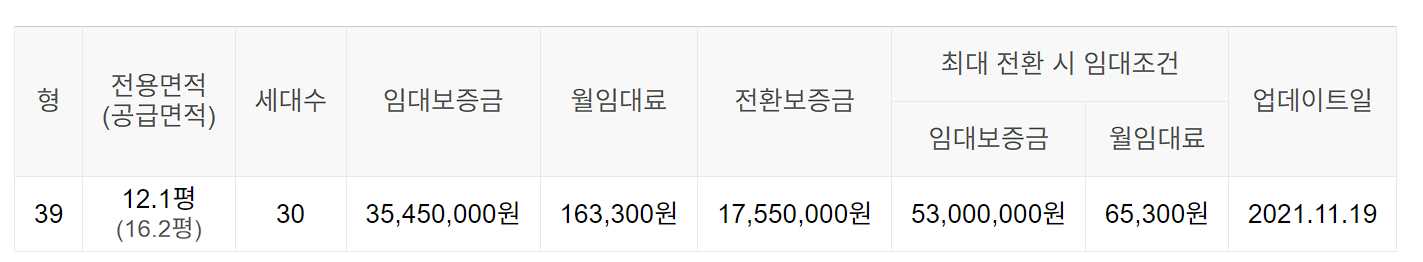 임대보증금 및 월 임대료는 입주자 모집공고일 기준이며, 보증금 최대 전환 시 변동될 수 있습니다.