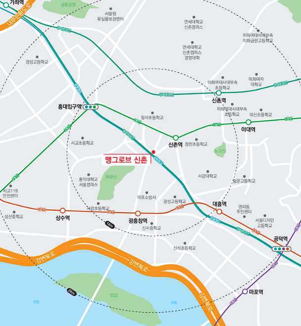 맹그로브신촌행복주택는 편의점 마트, 병원, 대학교, 공원, 카페 등 다양한 편의시설이 고루 갖춰진 지역에 위치하고 있습니다.
