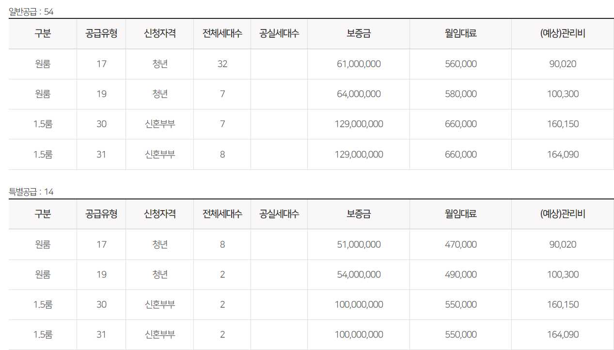 임대보증금 및 월 임대료는 입주자 모집공고일 기준으로 보증금 최대 전환 시 변동될 수 있습니다.