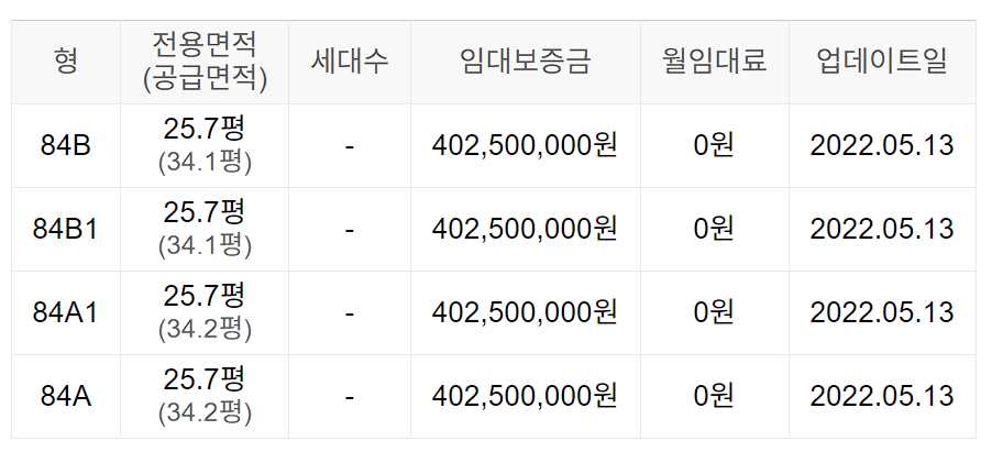임대보증금 및 월 임대료는 입주자 모집공고일 기준이며, 보증금 최대 전환 시 변동될 수 있습니다.