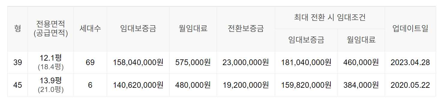 임대보증금 및 월 임대료는 입주자 모집공고일 기준이며, 보증금 최대 전환 시 변동될 수 있습니다.