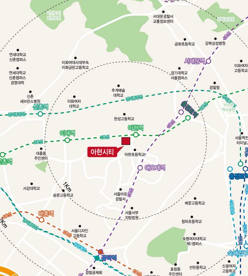 - 지하철역 2호선 아현역