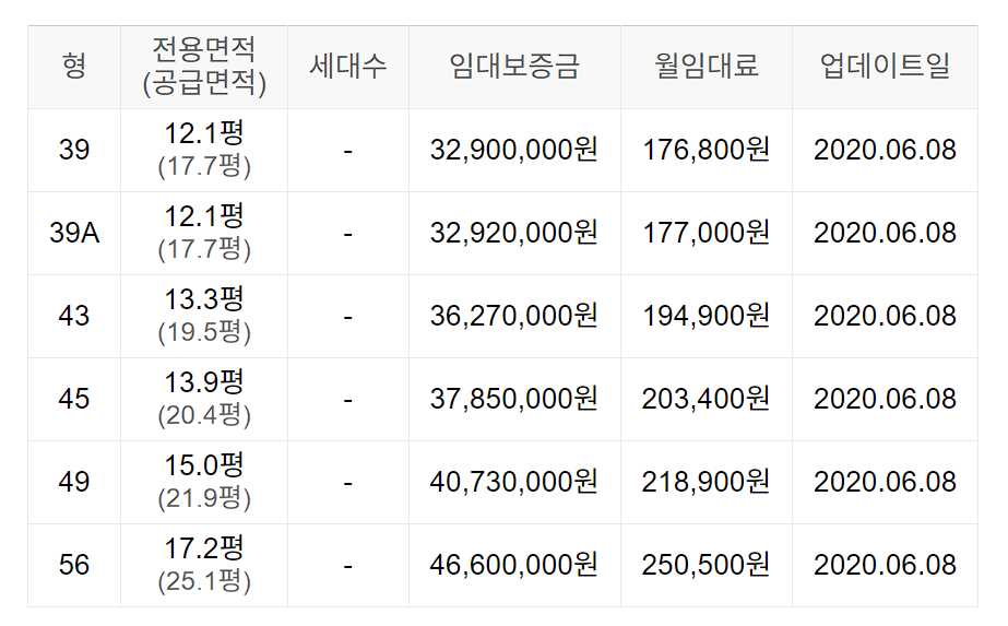 임대보증금 및 월 임대료는 입주자 모집공고일 기준이며, 보증금 최대 전환 시 변동될 수 있습니다.