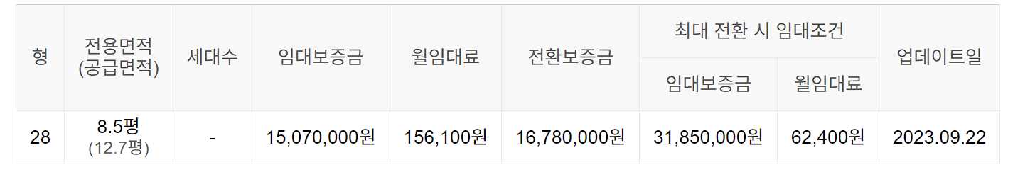 임대보증금 및 월 임대료는 입주자 모집공고일 기준이며, 보증금 최대 전환 시 변동될 수 있습니다.