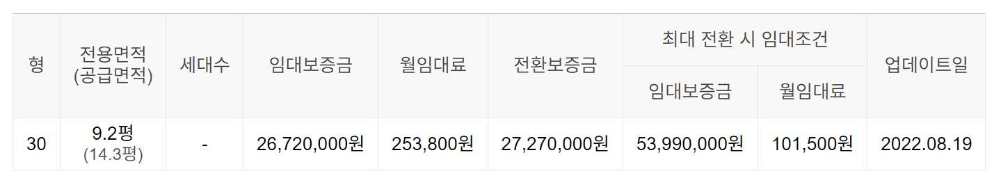 임대보증금 및 월 임대료는 입주자 모집공고일 기준이며, 보증금 최대 전환 시 변동될 수 있습니다.