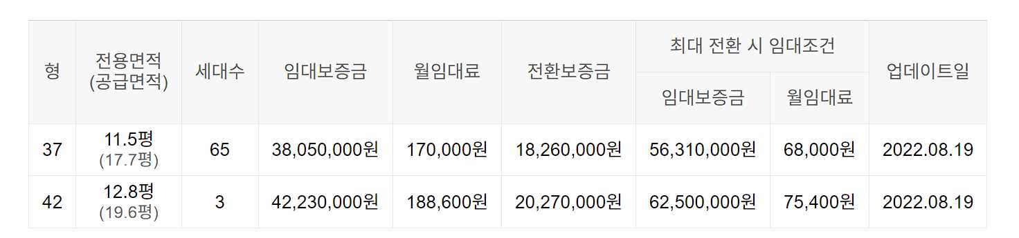임대보증금 및 월 임대료는 입주자 모집공고일 기준이며, 보증금 최대 전환 시 변동될 수 있습니다.