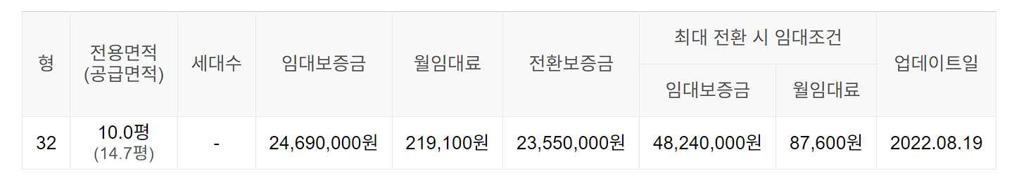임대보증금 및 월 임대료는 입주자 모집공고일 기준이며, 보증금 최대 전환 시 변동될 수 있습니다.