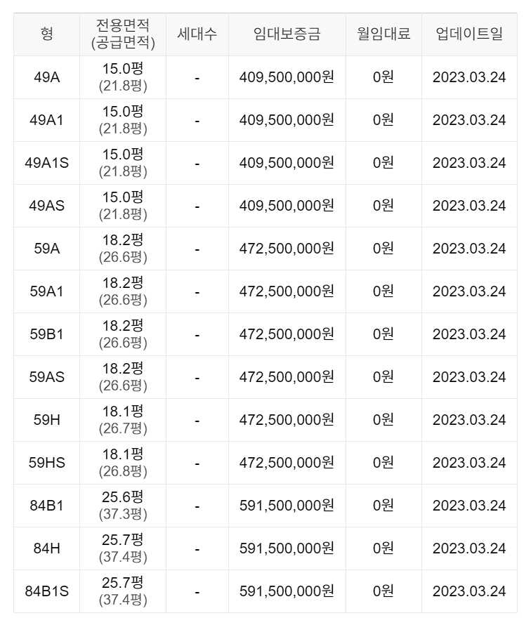 임대보증금 및 월 임대료는 입주자 모집공고일 기준이며, 보증금 최대 전환 시 변동될 수 있습니다.