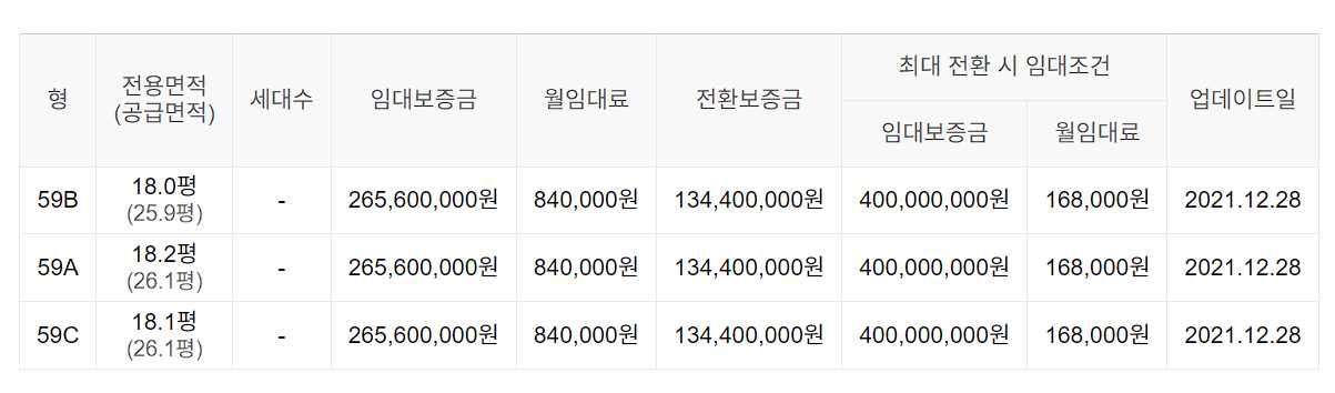 임대보증금 및 월 임대료는 입주자 모집공고일 기준이며, 보증금 최대 전환 시 변동될 수 있습니다.