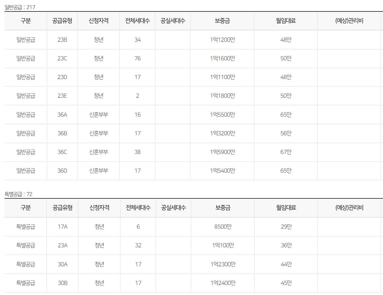 임대보증금 및 월 임대료는 입주자 모집공고일 기준으로 보증금 최대 전환 시 변동될 수 있습니다.