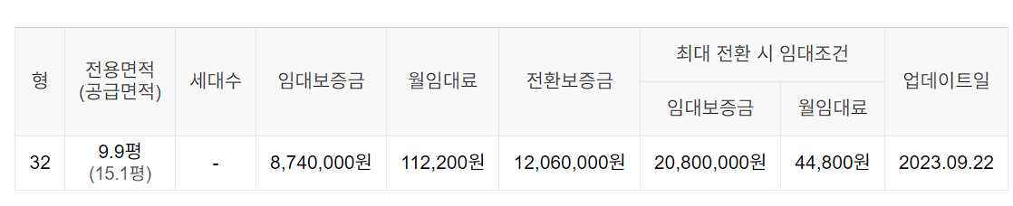 임대보증금 및 월 임대료는 입주자 모집공고일 기준이며, 보증금 최대 전환 시 변동될 수 있습니다.