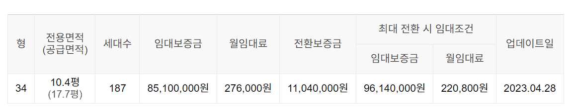 임대보증금 및 월 임대료는 입주자 모집공고일 기준이며, 보증금 최대 전환 시 변동될 수 있습니다.
