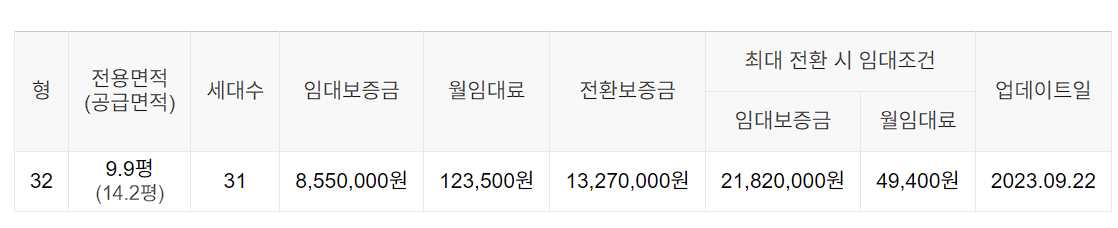 임대보증금 및 월 임대료는 입주자 모집공고일 기준이며, 보증금 최대 전환 시 변동될 수 있습니다.