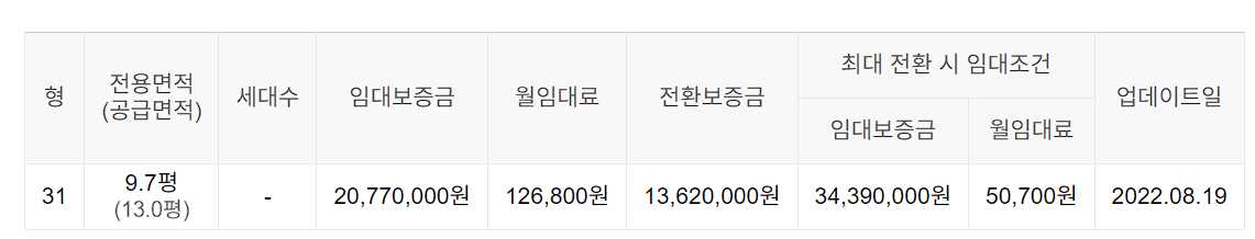 임대보증금 및 월 임대료는 입주자 모집공고일 기준이며, 보증금 최대 전환 시 변동될 수 있습니다.