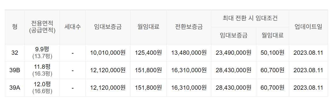 임대보증금 및 월 임대료는 입주자 모집공고일 기준이며, 보증금 최대 전환 시 변동될 수 있습니다.