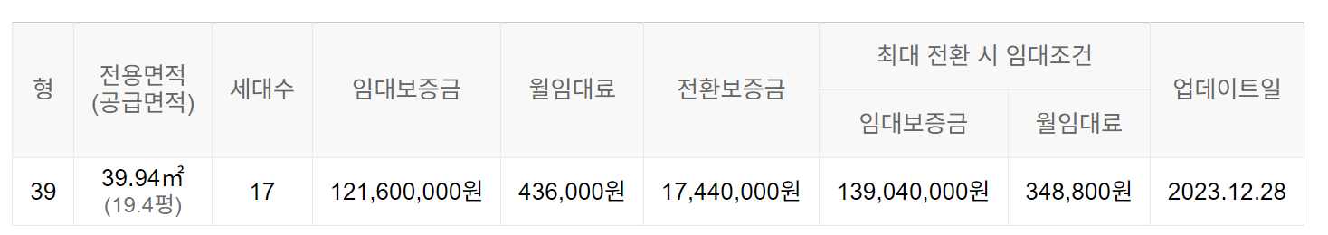 임대보증금 및 월 임대료는 입주자 모집공고일 기준이며, 보증금 최대 전환 시 변동될 수 있습니다.