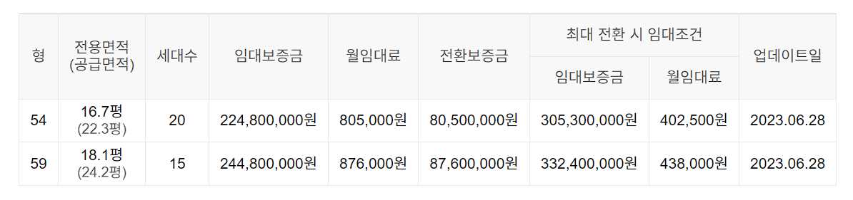 임대보증금 및 월 임대료는 입주자 모집공고일 기준이며, 보증금 최대 전환 시 변동될 수 있습니다.