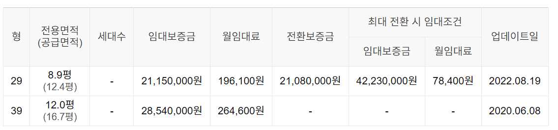 임대보증금 및 월 임대료는 입주자 모집공고일 기준이며, 보증금 최대 전환 시 변동될 수 있습니다.