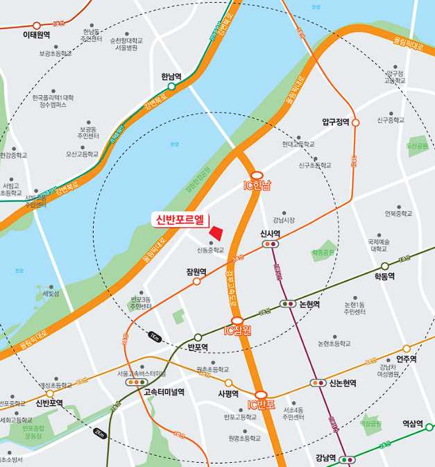 신반포르엘는 편의점 마트, 병원, 대학교, 공원, 카페 등 다양한 편의시설이 고루 갖춰진 지역에 위치하고 있습니다.