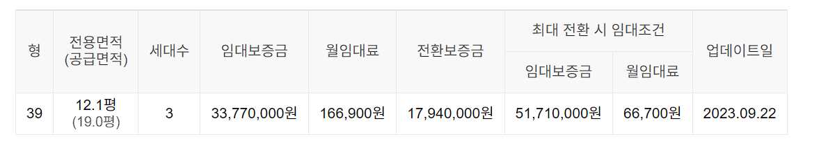 임대보증금 및 월 임대료는 입주자 모집공고일 기준이며, 보증금 최대 전환 시 변동될 수 있습니다.